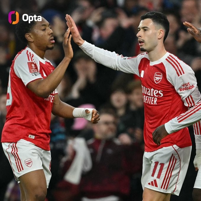 据OPTA数据,阿森纳成为自1992-93赛季英超成立以来,首支在足总杯比赛开场30分钟内攻入四球的球队。